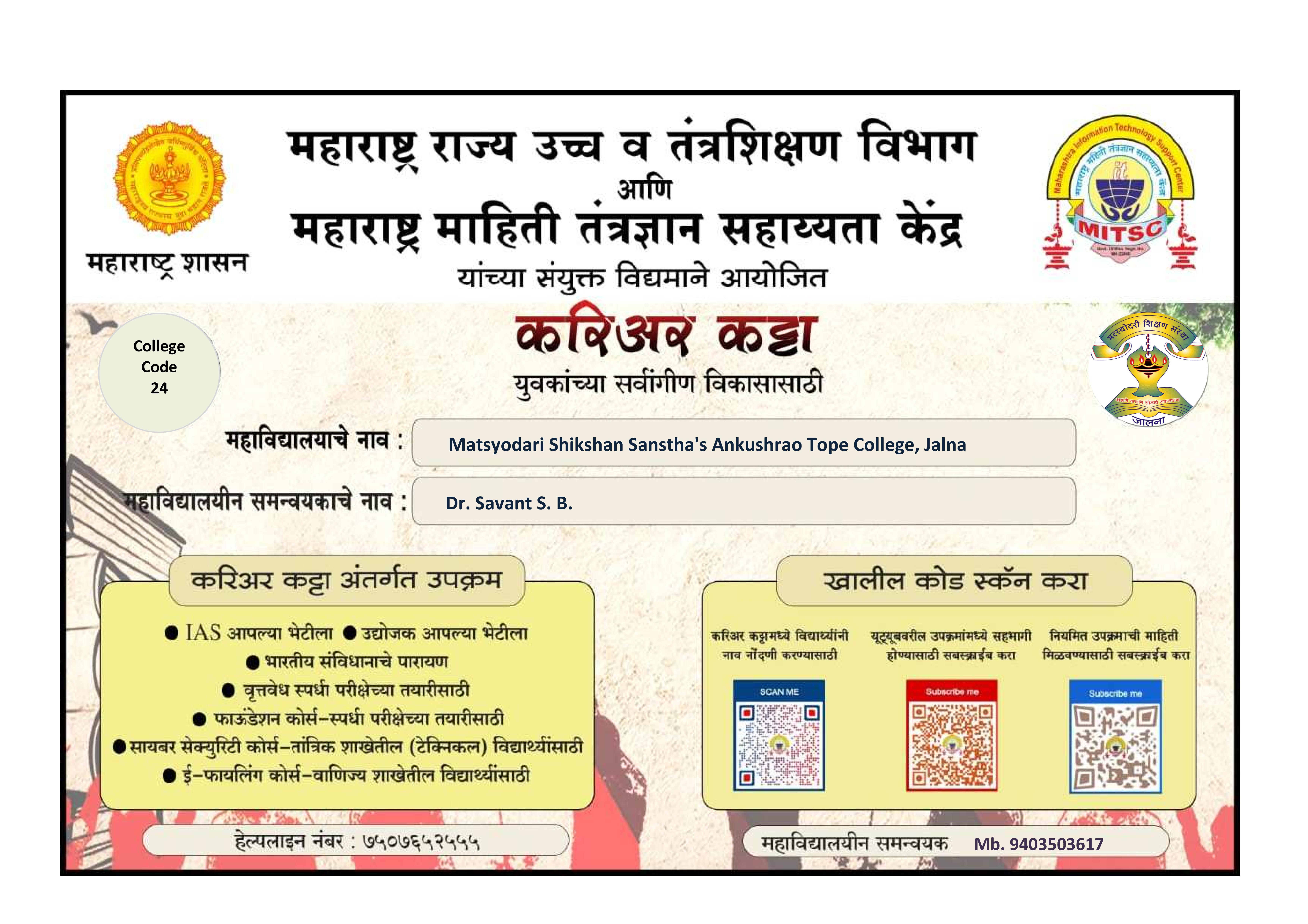 Ankushrao Tope College, Jalna (MS)